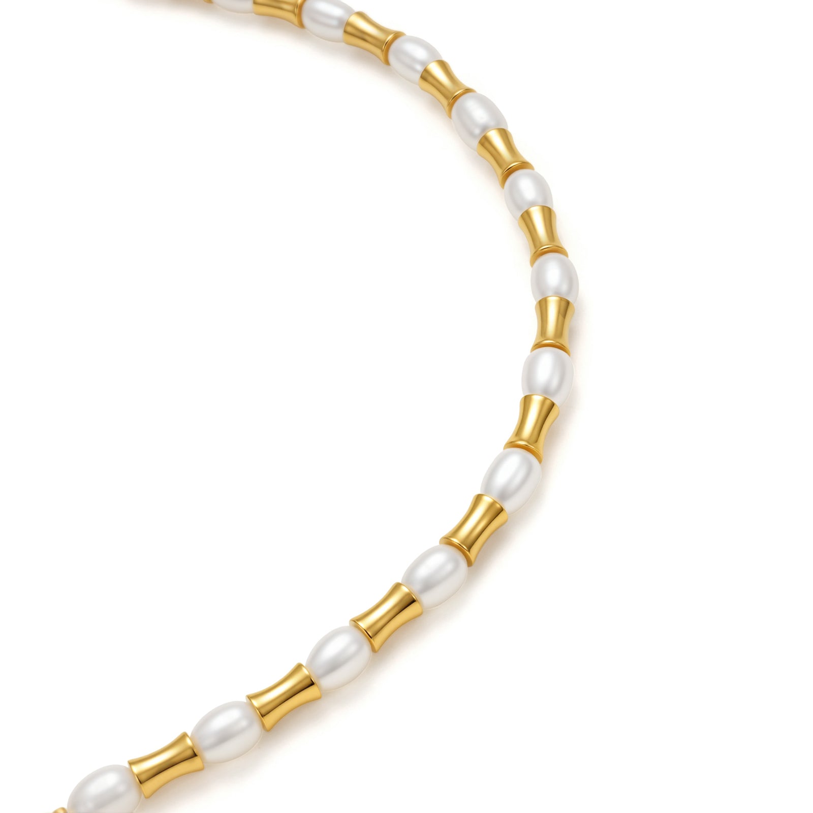 Elevate your everyday style with the Bamboo Glow Freshwater Pearl Bracelet, featuring lustrous natural pearls accented by sculpted 18K gold-plated stainless steel bamboo beads. The clean contrast of organic shimmer and modern gold detailing creates a minimalist, wearable luxury look, perfect for layering or wearing on its own.