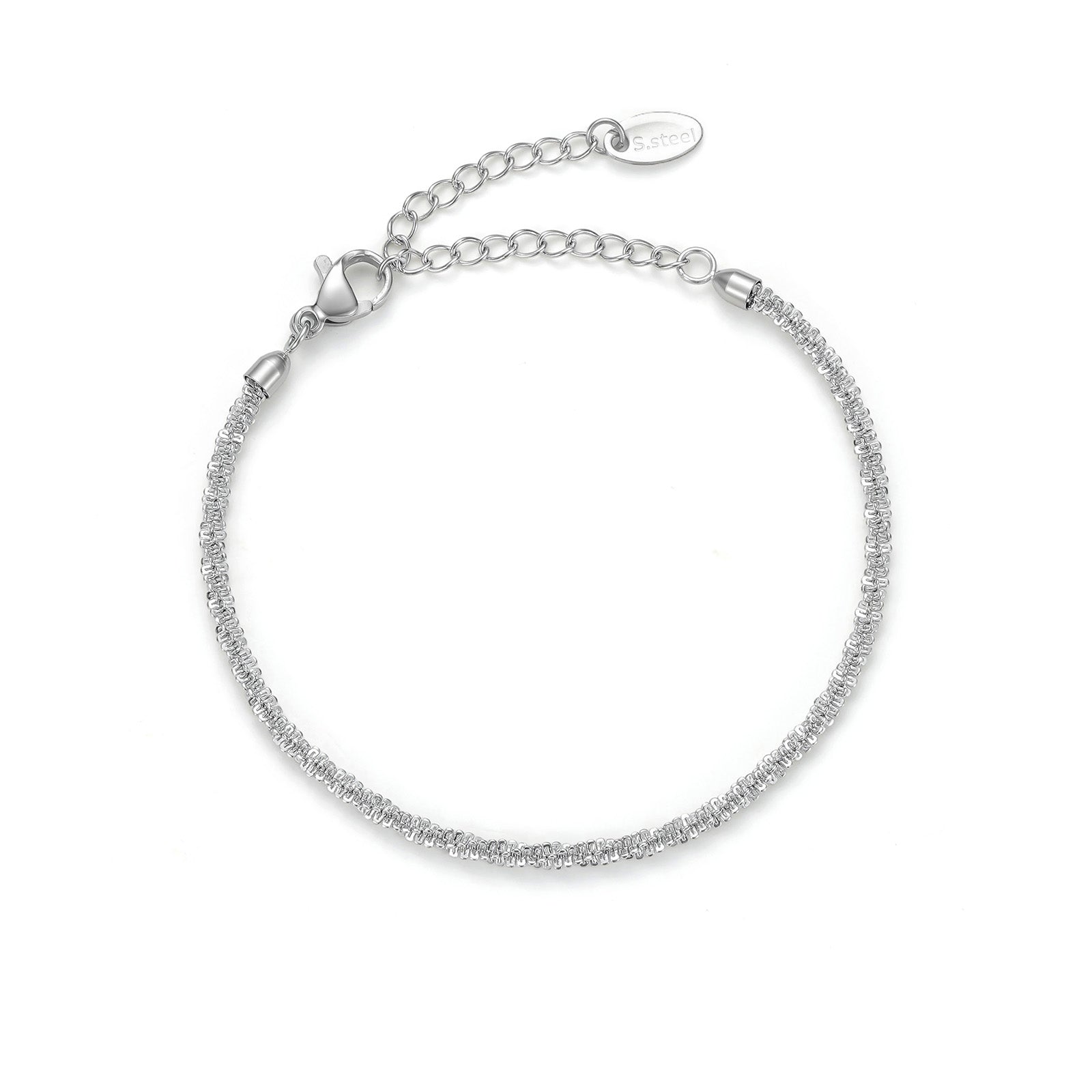 A minimalist essential with a subtle statement twist. This sleek, woven-style bracelet features tightly linked loops that create a smooth, flexible texture with a refined shimmer. Available in both gold and silver, it’s perfect for everyday wear and effortless stacking. Designed for comfort and durability, it’s water-resistant, tarnish-free, and hypoallergenic — made to shine from morning to night without worry.