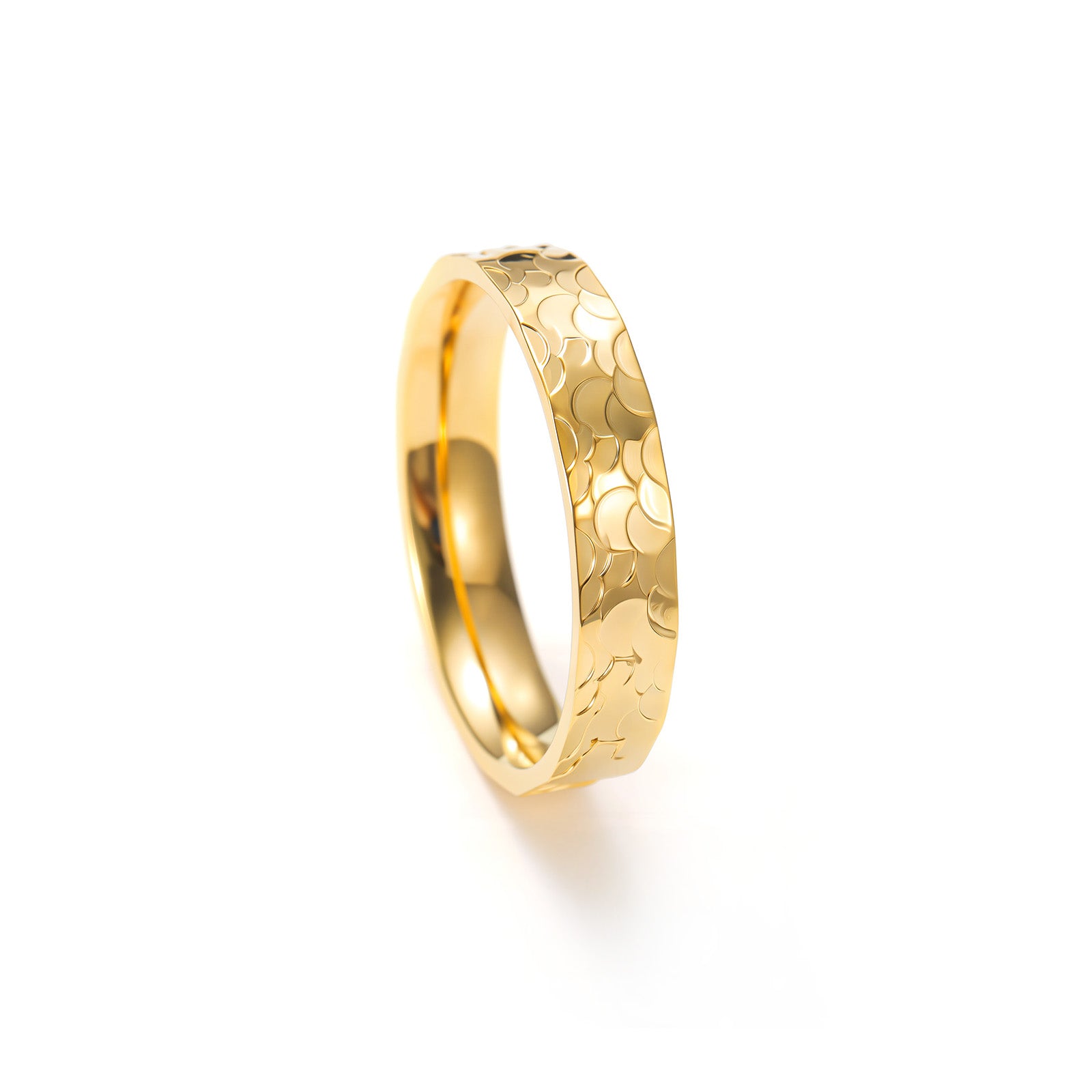 Inspired by ancient dragon armor, this sculptural band features an engraved dragon-scale texture that shimmers with strength and quiet magic. Crafted in 18K gold-plated stainless steel, it’s water-resistant, tarnish-free, and made for everyday wear—an elegant symbol of power, protection, and timeless allure.